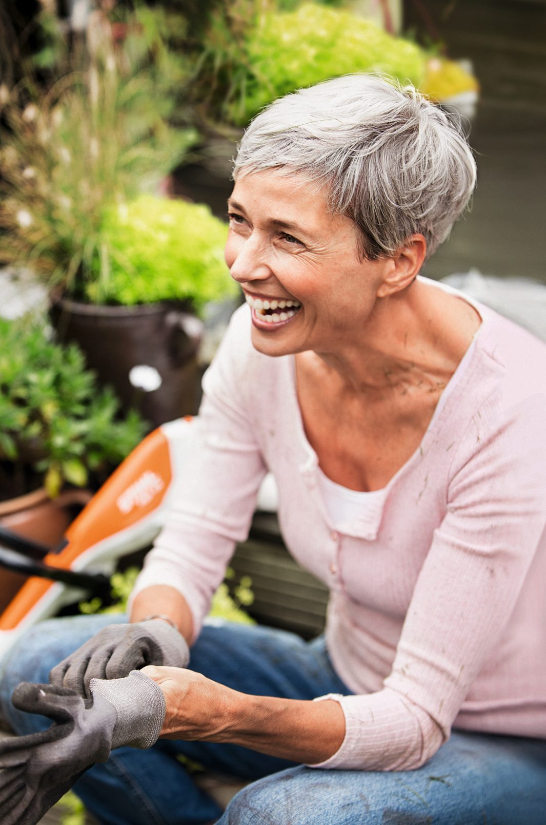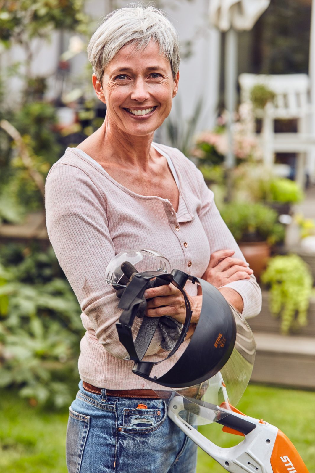 Mit einem Gewicht von nur 2,3 kg ist die akkubetriebene Motorsense STIHL FSA 45 besonders leicht und sehr komfortabel. Der Teleskop-Schaft und der Bügelgriff sind werkzeuglos einstellbar. So kannst du insbesondere deinen Rücken bei der Arbeit schonen. Der Arbeitswinkel der Mäheinheit kann mühelos justiert werden, wenn du beispielsweise vertikal Kanten schneiden möchtest.